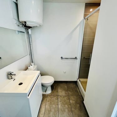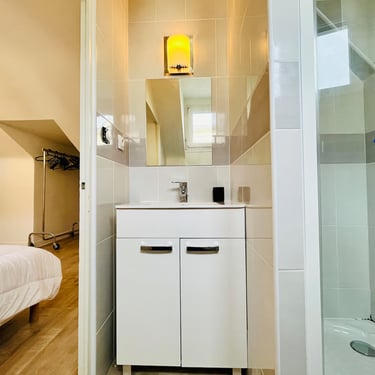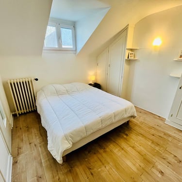 - 1 suite à l’étage avec un lit queen size (160cm) et une salle de douche.