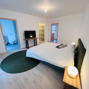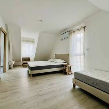 Au 1er et 2ème étage, les 4 suites sont conçues pour vous offrir un maximum de confort et d’intimité. Une suite dispose d'un lit king-size, deux suites disposent d'un lit queen-size, une suite dispose d'un lit queen size et un lit simple.
