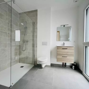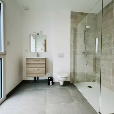 Chaque suite dispose d’une salle de douche privative et WC ainsi que de nombreux rangements pour un séjour agréable.