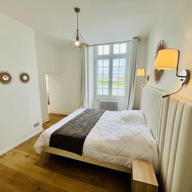 - Une véritable suite avec lit double et son cabinet de toilette bénéficiant d'une baignoire, une douche, un wc ainsi qu'une vue directe sur la Loire vous y attend.