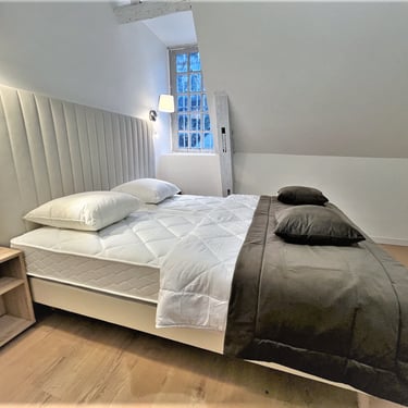 - Une suite avec lit double et son cabinet de toilette bénéficiant d'une douche et un wc.